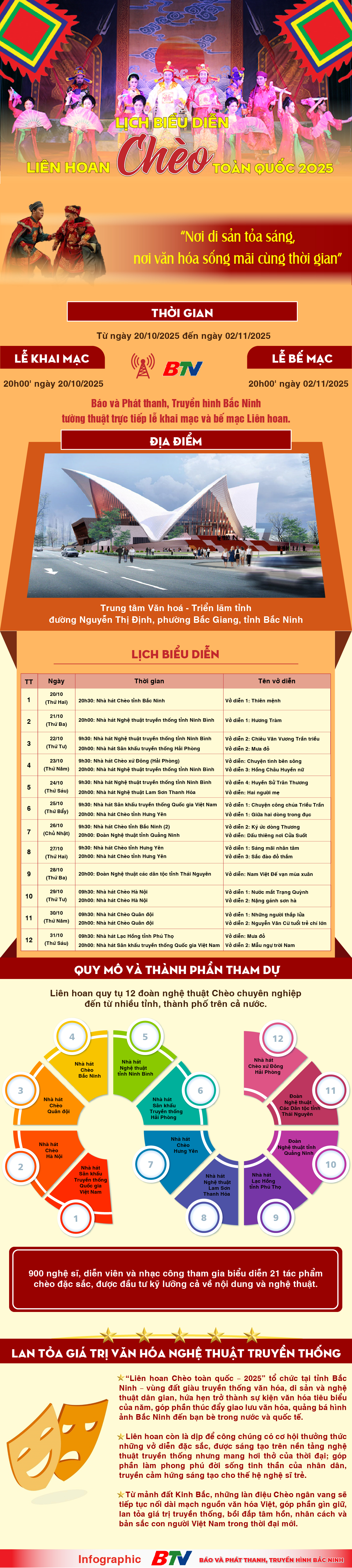 Lịch biểu diễn Liên hoan Chèo toàn quốc - 2025 tại Bắc Ninh