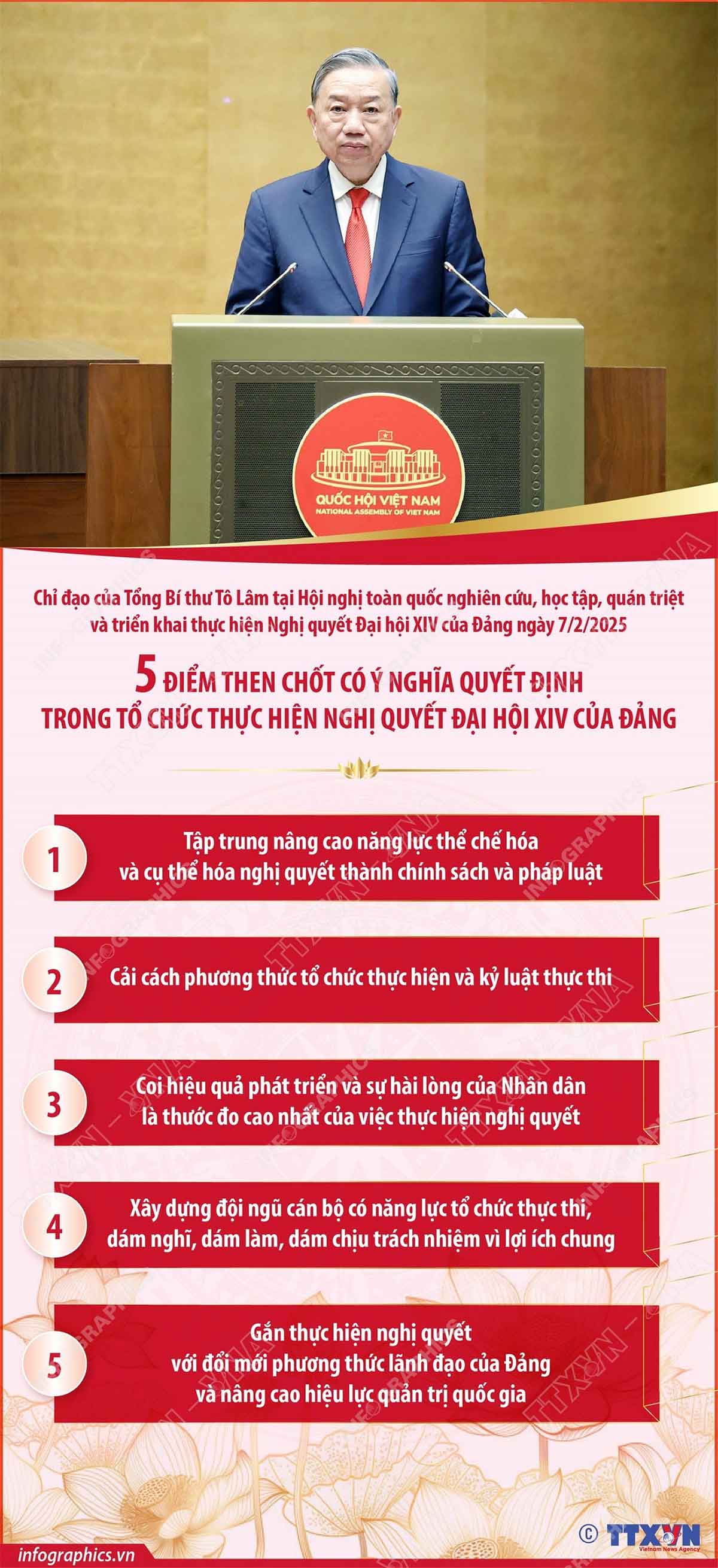 Trên cơ sở đó, cần tập trung thực hiện 5 điểm then chốt có ý nghĩa quyết định trong khâu tổ chức thực hiện Nghị quyết.