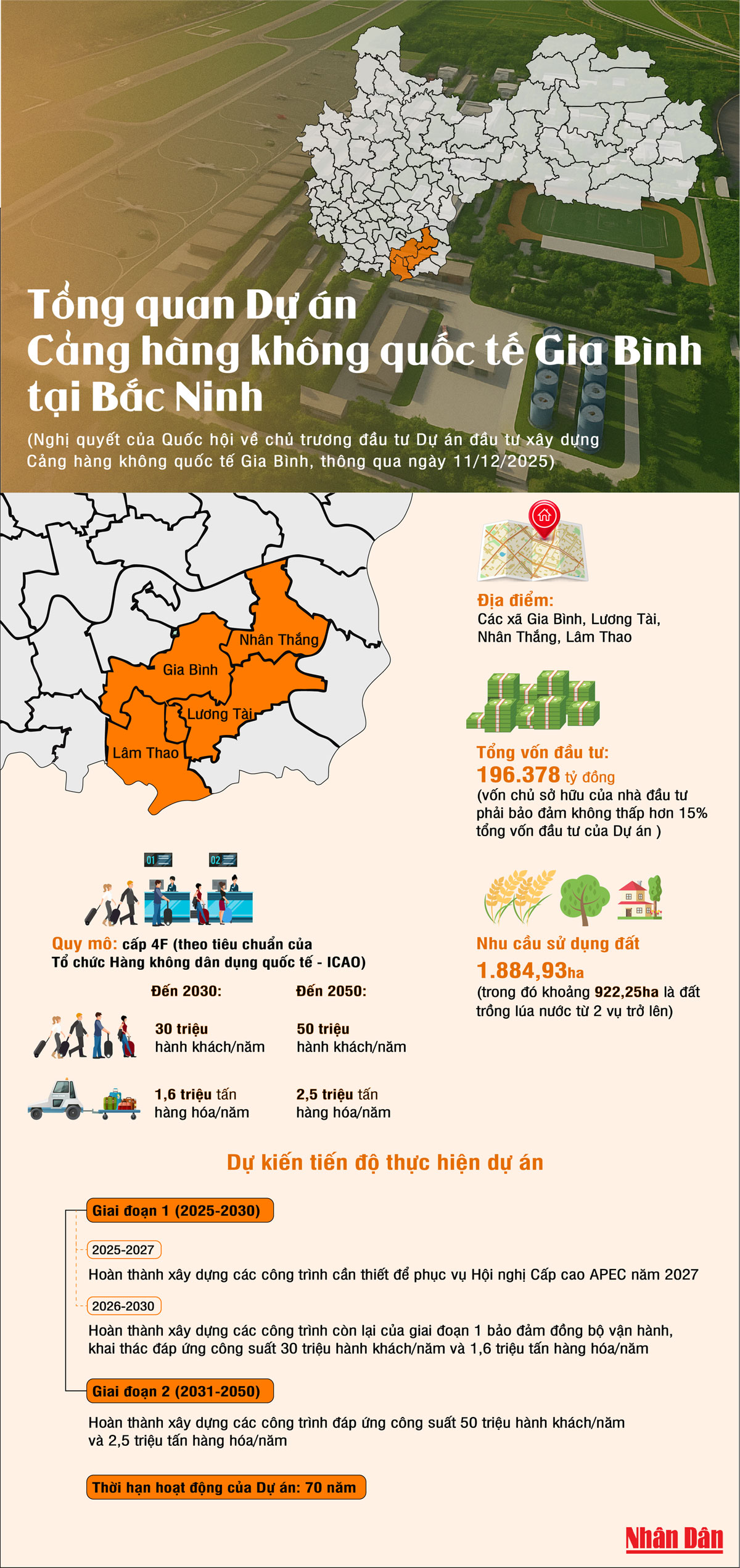 Nghị quyết về chủ trương đầu tư Dự án đầu tư xây dựng Cảng hàng không quốc tế Gia Bình đã được Quốc hội thông qua trong phiên họp sáng 11/12, với 410/427 đại biểu có mặt tán thành (bằng 86,68% tổng số đại biểu Quốc hội).