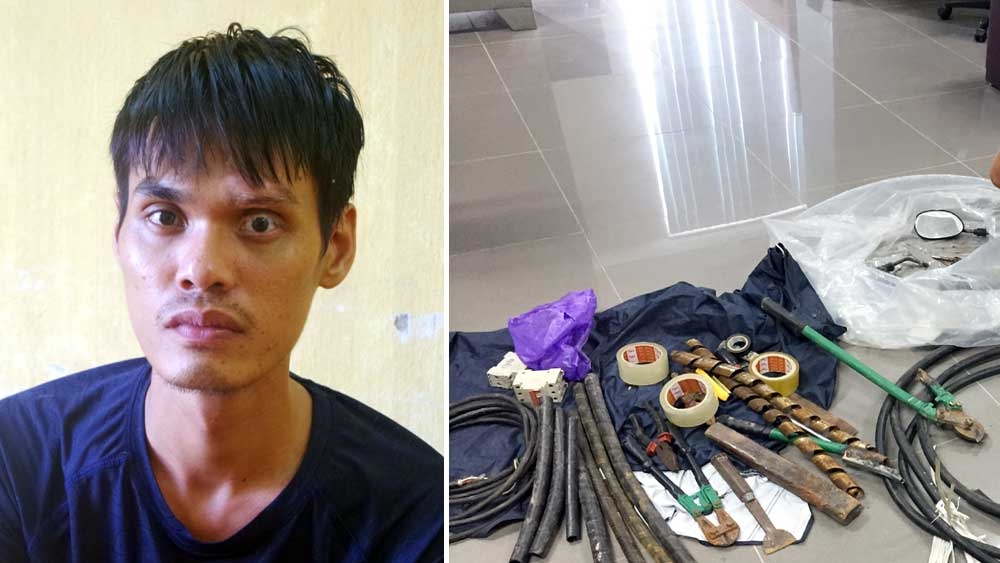 Tiến hành kiểm tra hành chính, tổ công tác phát hiện trong cốp xe có một số vật dụng như: Kìm cộng lực, kìm cắt dây điện, bút thử điện, găng tay cao su, kính, dao dọc giấy, quần áo thợ điện... Tổ công tác đã đưa đối tượng về trụ sở Công an phường Trung Hưng để làm việc.
