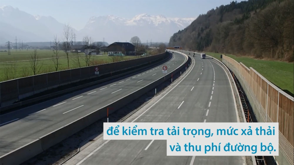 Công nghệ vệ tinh theo dõi xe tải thông qua thiết bị định danh và camera nhận diện biển số để kiểm tra và thu phí đường bộ.