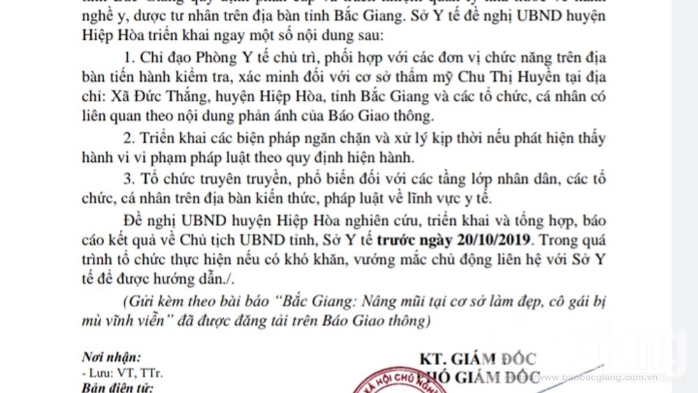 Ngay như trường hợp chủ cơ sở thẩm mỹ Chu Huyền, xã Đức Thắng (Hiệp Hòa) chưa được Sở Y tế ra thông báo đủ điều kiện nhưng vẫn hoạt động công khai, quảng cáo trên face book cho đến tháng 3-2019 mới bị đoàn kiểm tra liên ngành của UBND huyện lập biên bản đình chỉ.