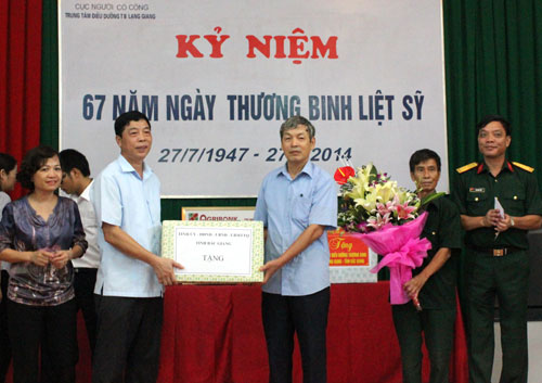 Đồng chí Bùi Văn Hải, Chủ tịch UBND tỉnh trao tặng quà tại Trung tâm Điều dưỡng Thương binh Lạng Giang.
