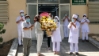 Giám đốc Bệnh viện Đà Nẵng tặng hoa chúc mừng cho Bác sĩ Phạm Ngọc Hàm (Trưởng khoa Y học Nhiệt đới), bác sĩ trực tiếp điều trị bệnh nhân mắc Covid-19. |