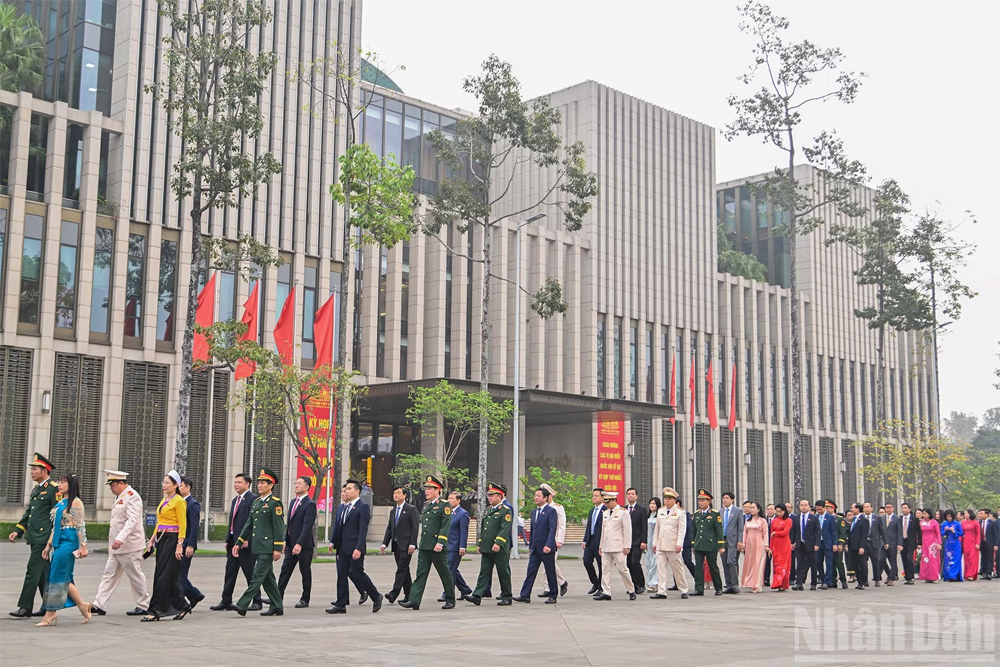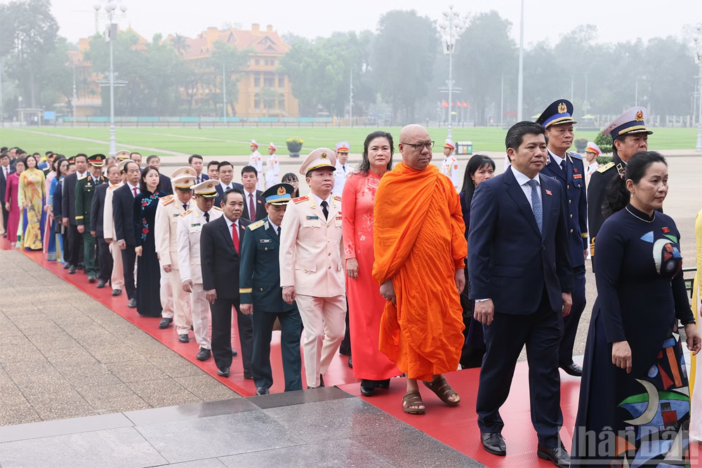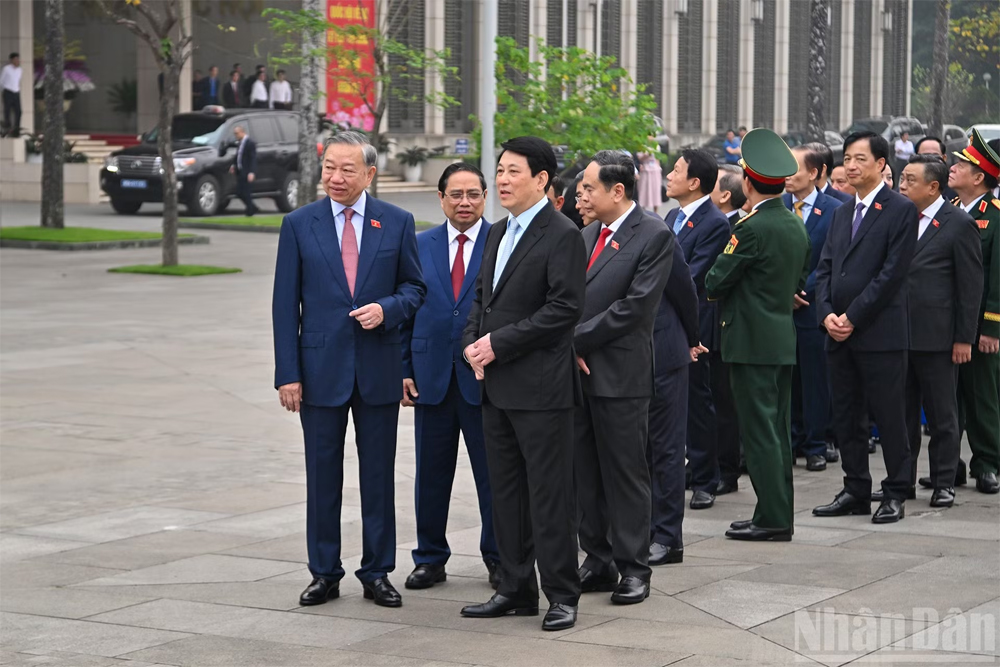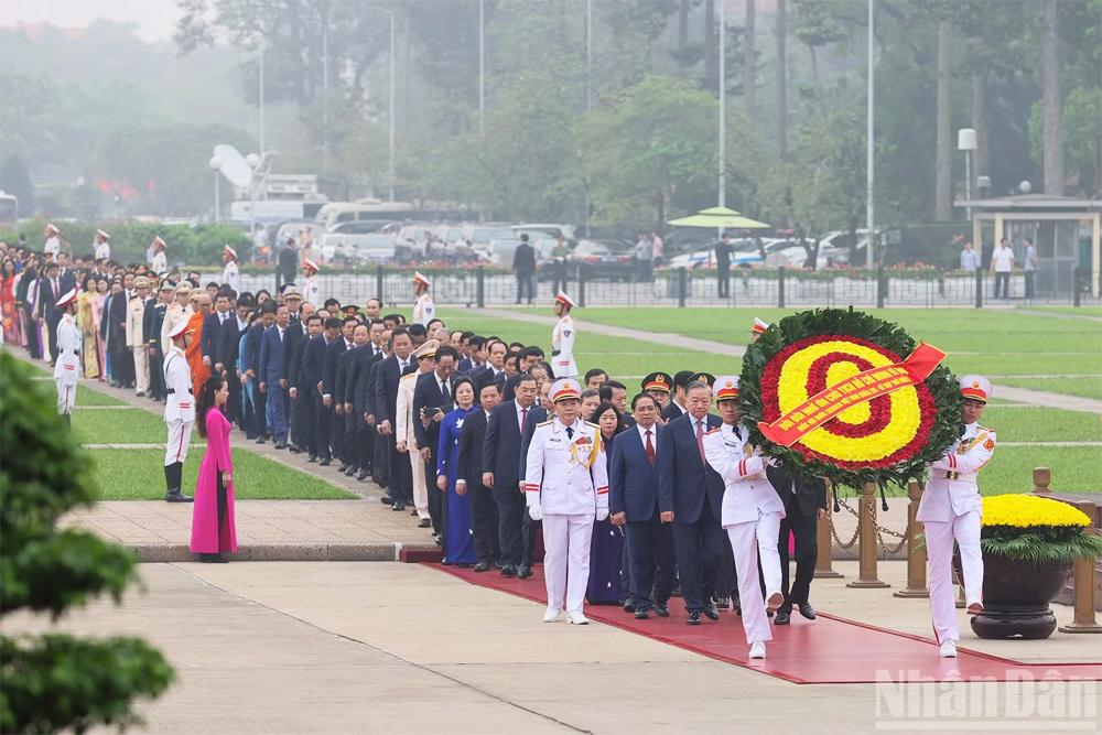 Tổng Bí thư Tô Lâm, Chủ tịch nước Lương Cường, Thủ tướng Phạm Minh Chính, Chủ tịch Quốc hội Trần Thanh Mẫn cùng các đồng chí lãnh đạo Đảng, Nhà nước và đại biểu Quốc hội vào Lăng, viếng Chủ tịch Hồ Chí Minh. |