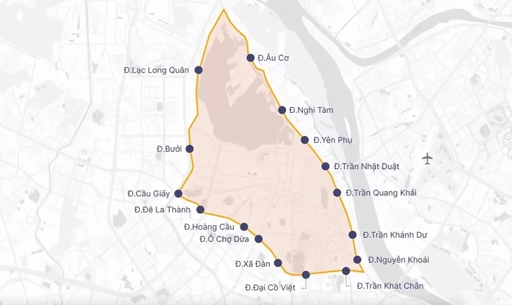 Vành đai 1 của Hà Nội được giới hạn bởi hàng loạt tuyến đường. |