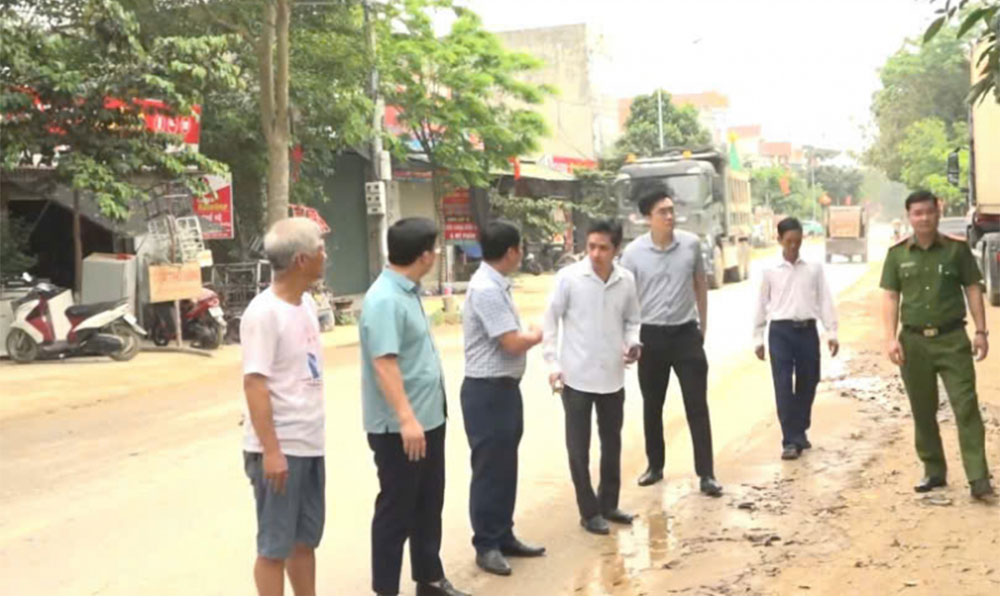 Chính quyền và Công an xã Lương Tài kiểm tra thực địa các khu vực chuẩn bị di dời thực hiện dự án. |