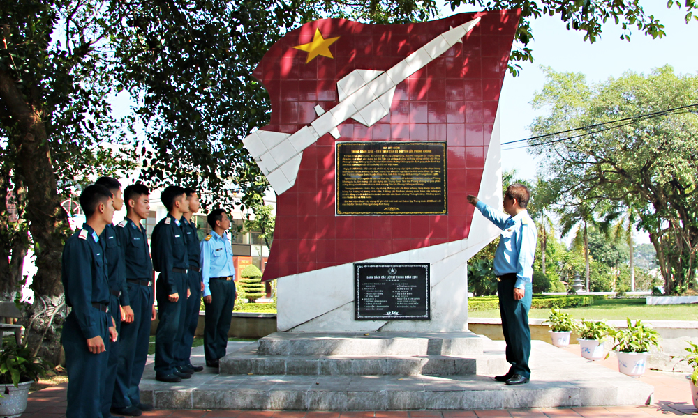 Bia lưu niệm ghi dấu nơi thành lập Trung đoàn 228B đặt tại Trường Cao đẳng Kỹ thuật Phòng không - Không quân cơ sở 2 (khu Trại Cờ). |