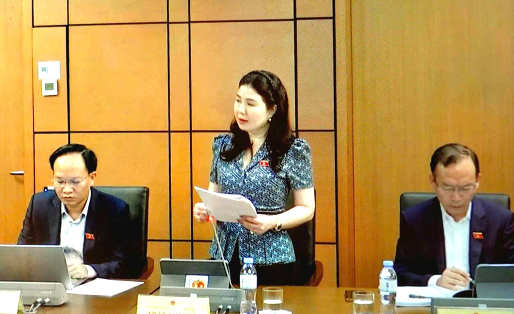 Đại biểu Đỗ Thị Việt Hà tham gia thảo luận tại tổ, sáng 31/10. |
