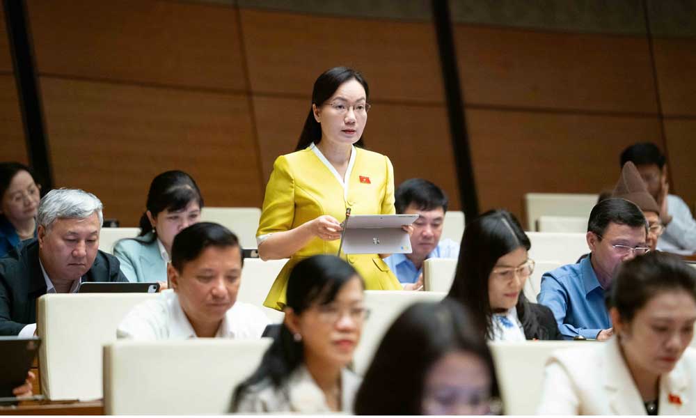 Đại biểu Đỗ Thị Việt Hà tham gia thảo luận tại hội trường, sáng 13/11. |
