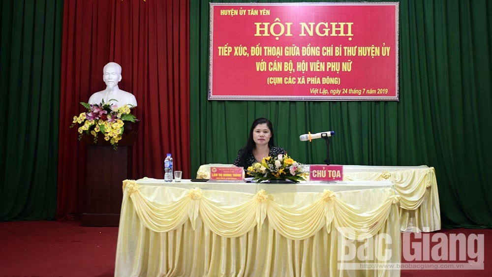 Bí thư Huyện ủy Tân Yên Lâm Thị Hương Thành tại buổi đối thoại. |