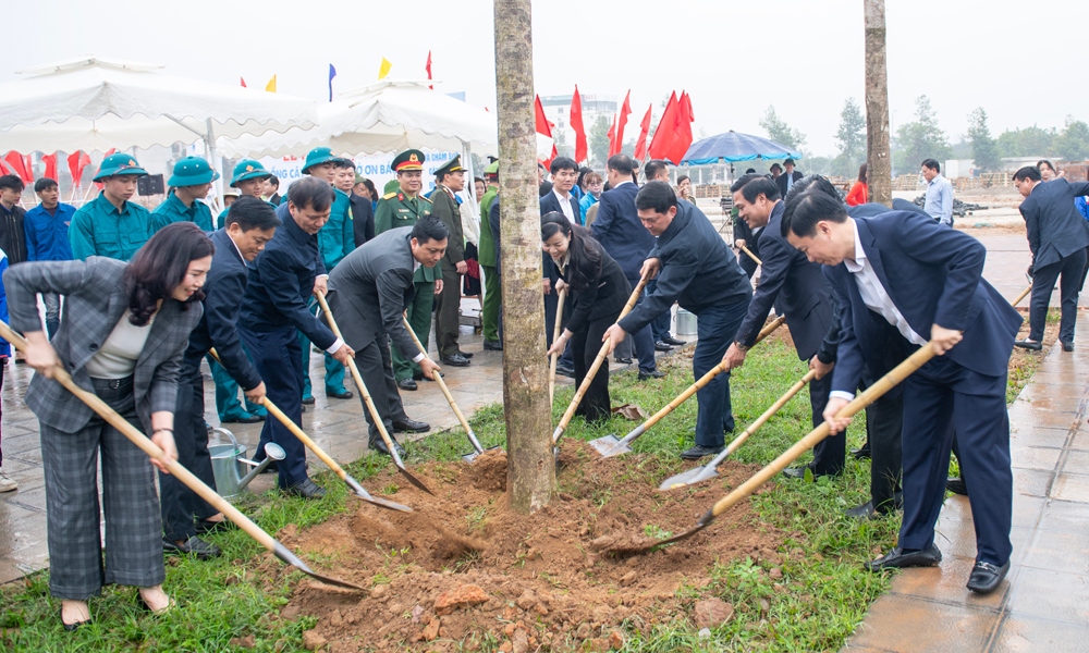 Ngay sau lễ phát động, Bí thư Tỉnh ủy Nguyễn Hồng Thái cùng các đồng chí lãnh đạo tỉnh, các đại biểu tham gia trồng 29 cây giáng hương tại khuôn viên dự án Đền thờ Bác Hồ.