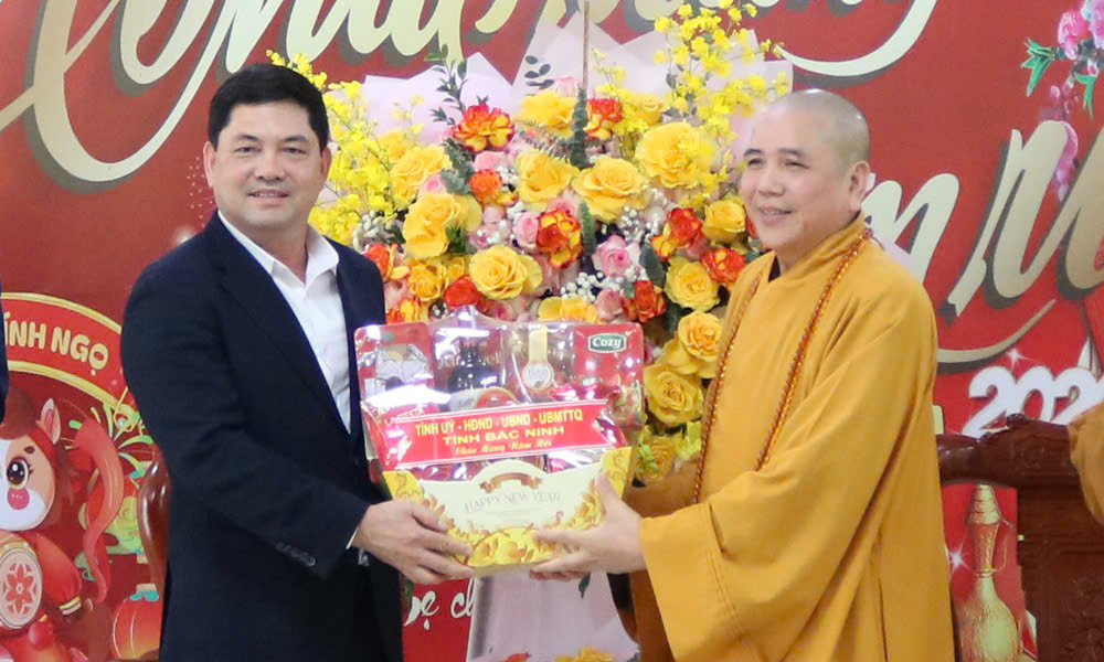 Thông tin tới Ban Trị sự tình hình phát triển kinh tế - xã hội của tỉnh, đồng chí Bí thư Tỉnh ủy nhấn mạnh, năm 2026 là năm cả nước tập trung thực hiện Nghị quyết Đại hội XIV của Đảng, tỉnh Bắc Ninh đang nỗ lực triển khai đồng bộ các giải pháp phát triển bền vững, nâng cao đời sống vật chất và tinh thần cho Nhân dân, giữ vững ổn định chính trị, trật tự an toàn xã hội. Đồng chí mong muốn trong thời gian tới, Ban Trị sự Giáo hội Phật giáo tỉnh tiếp tục phát huy vai trò, uy tín của mình, vận động tăng, ni, Phật tử sống “tốt đời, đẹp đạo”; tích cực ủng hộ các chủ trương, chính sách phát triển kinh tế - xã hội của tỉnh và đất nước; tham gia xây dựng nếp sống văn hóa, bảo vệ môi trường, chăm lo người nghèo, người có hoàn cảnh khó khăn, góp phần xây dựng Bắc Ninh ngày càng giàu đẹp, văn minh.