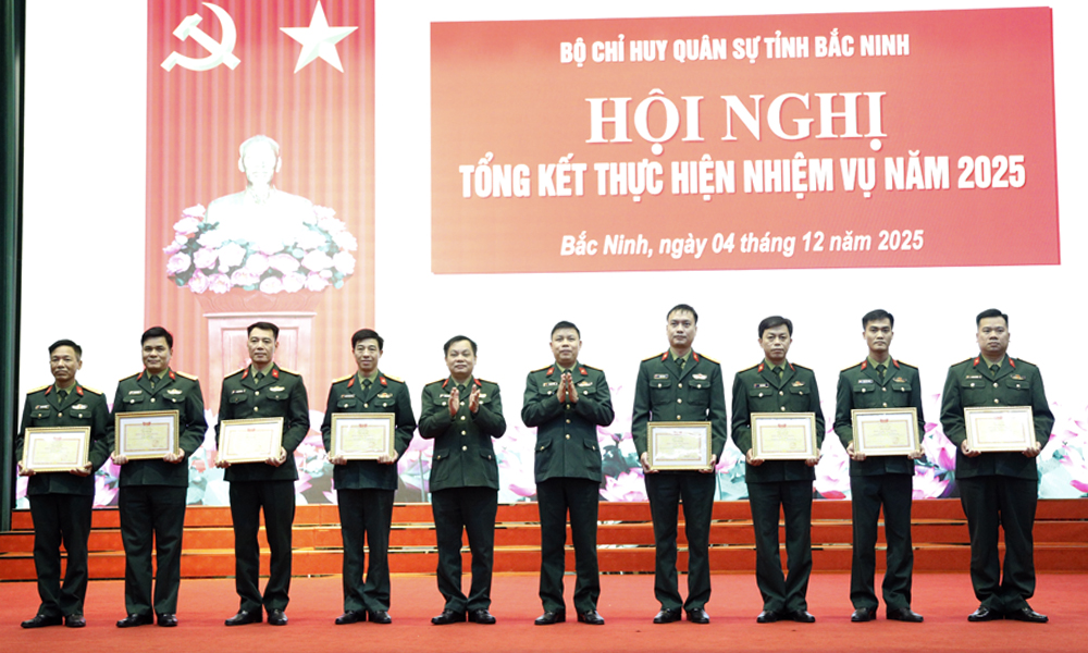 BẮC NINH - Ngày 4/12, Bộ Chỉ huy quân sự tỉnh Bắc Ninh tổ chức tổng kết nhiệm vụ năm 2025, triển khai nhiệm vụ năm 2026. Dự hội nghị có các đồng chí: Đại tá Phạm Văn Tạo, Ủy viên Ban Thường vụ Tỉnh ủy, Chỉ huy trưởng Bộ Chỉ huy quân sự tỉnh; Đại tá Trần Viết Năng, Chính ủy Bộ Chỉ huy quân sự tỉnh.