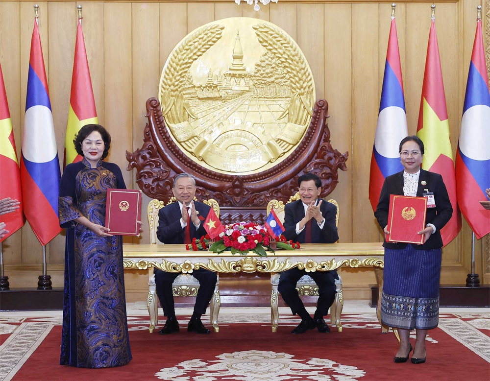 Kết thúc hội đàm, hai nhà lãnh đạo đã chứng kiến lễ trao 12 văn kiện hợp tác quan trọng giữa các bộ, ngành, địa phương và cơ quan hữu quan của hai nước trên các lĩnh vực trụ cột gồm: quốc phòng, an ninh, y tế, tư pháp, giáo dục-đào tạo, tài chính-ngân hàng, hạ tầng chiến lược…; tạo nền tảng pháp lý và động lực mới để đưa quan hệ hợp tác Việt Nam – Lào tiếp tục phát triển sâu sắc, thực chất và hiệu quả hơn nữa trong giai đoạn mới.