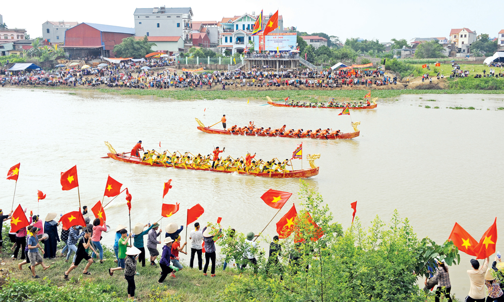 Hội bơi chải trên sông Cầu. Ảnh: Việt Hưng. |