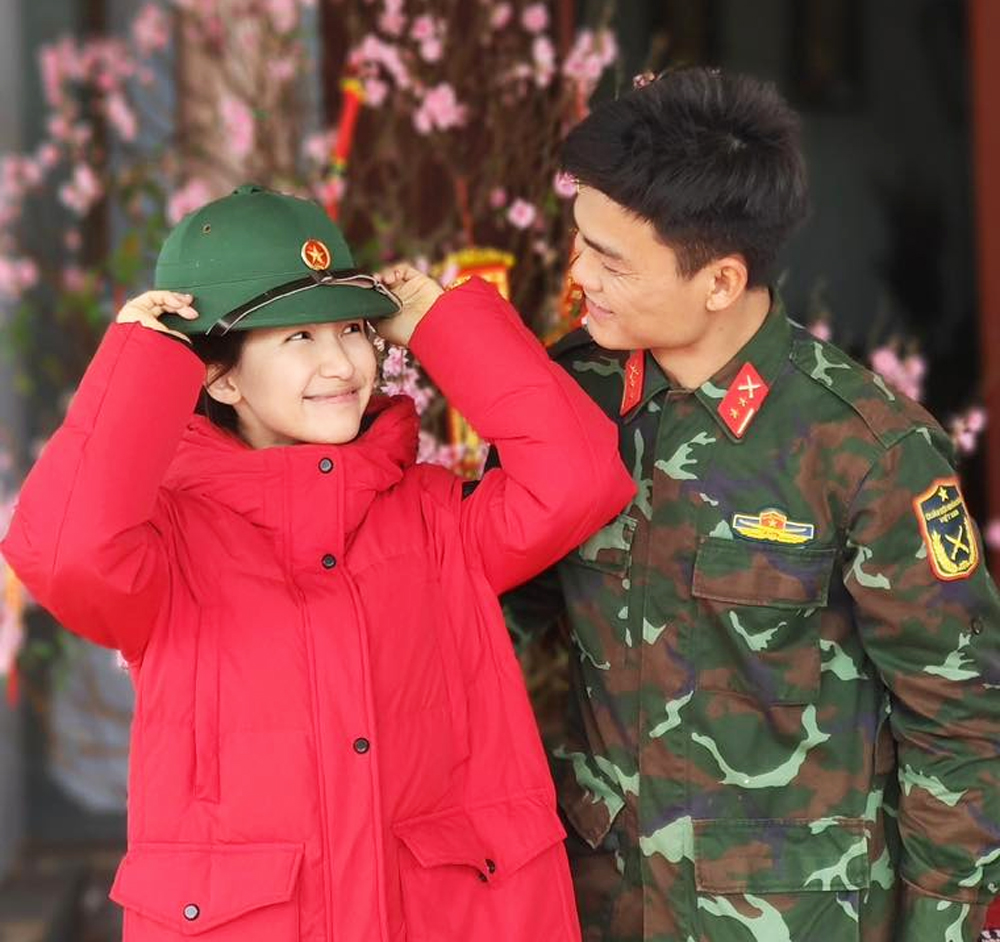 Hòa Minzy bên người yêu quân nhân Văn Cương. |