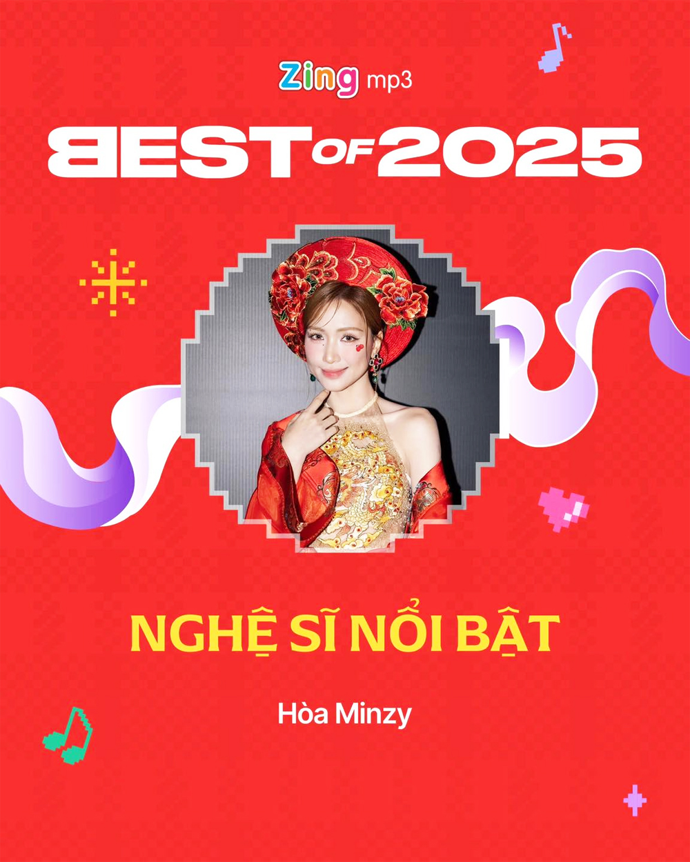 Tháng 12, cô khép lại năm tuổi 30 bằng giải thưởng Tình nguyện Quốc gia 2025 và giải thưởng Nhà quảng cáo truyền cảm hứng - những danh hiệu cho thấy hình ảnh Hoà Minzy không chỉ gắn với âm nhạc, mà còn với trách nhiệm xã hội và giá trị cộng đồng.