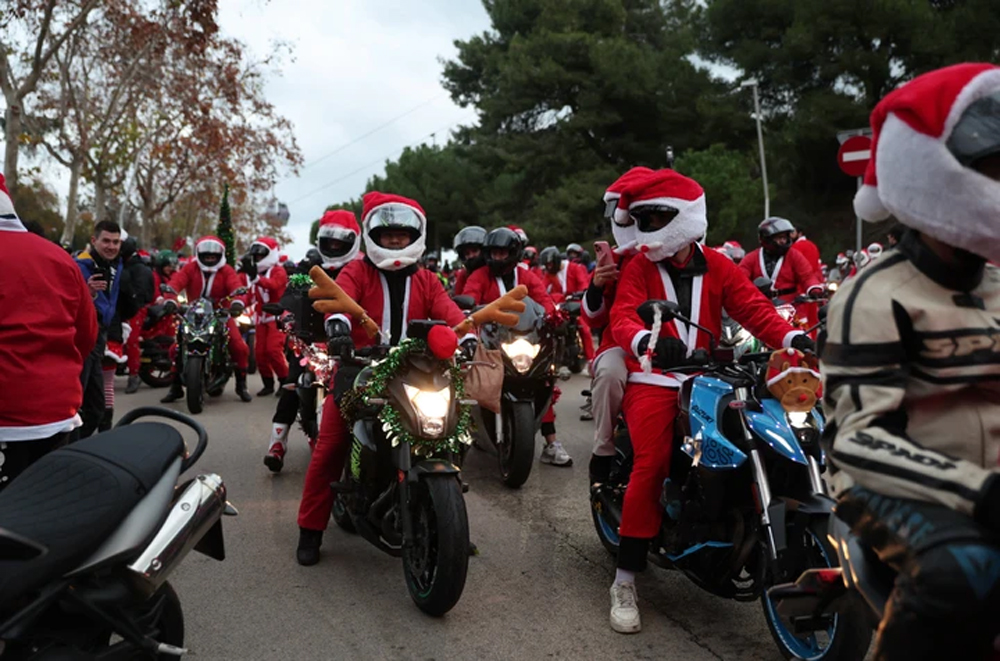 Không khí giáng sinh tại Tây Ban cũng sôi động khắp các cung đường. Nhiều người đã mặc trang phục ông già Noel lái xe máy qua Barcelona để ăn mừng ngày lễ này.