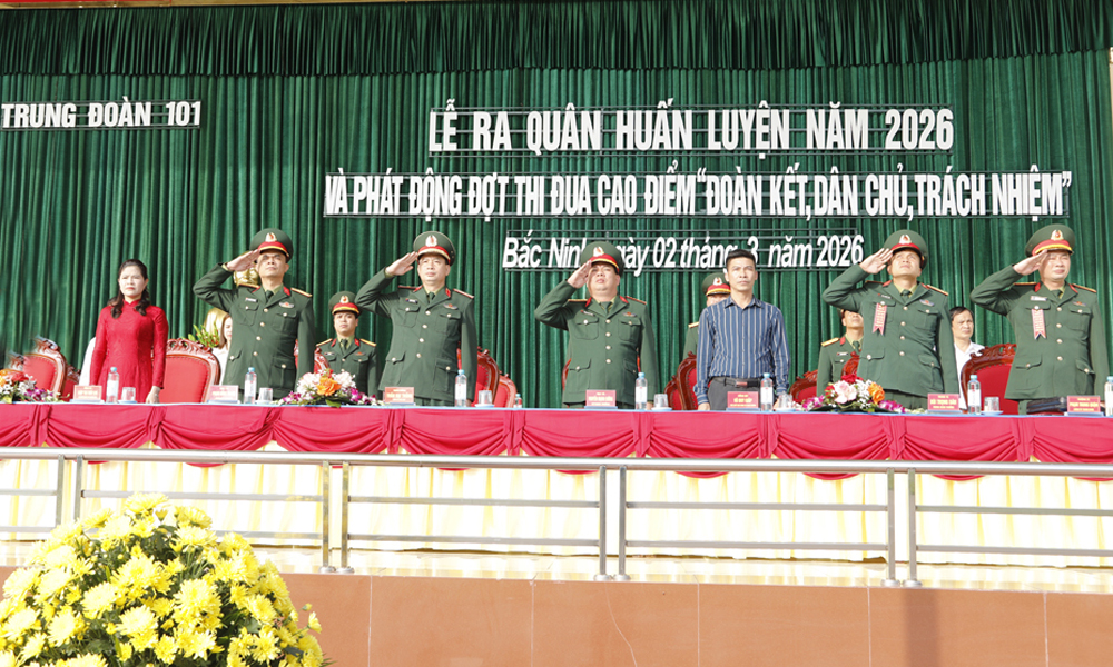 BẮC NINH - Ngày 2/3, Trung đoàn 101, Sư đoàn 325 (Quân đoàn 12) tổ chức lễ ra quân huấn luyện và phát động đợt thi đua cao điểm chào mừng bầu cử đại biểu Quốc hội khóa XVI và bầu cử đại biểu HĐND các cấp nhiệm kỳ 2026 - 2031; chào mừng kỷ niệm 136 năm Ngày sinh Chủ tịch Hồ Chí Minh.