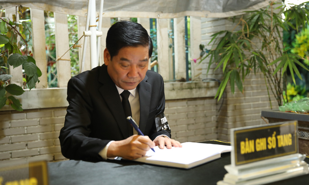 Đồng chí Nguyễn Văn Gấu ghi sổ tang. |