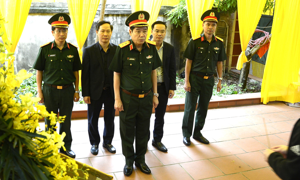 Trung tướng Nguyễn Văn Gấu, Ủy viên Trung ương Đảng, Thứ trưởng Bộ Quốc phòng, nguyên Bí thư Tỉnh ủy Bắc Ninh viếng đồng chí Ngô Đình Loan. |