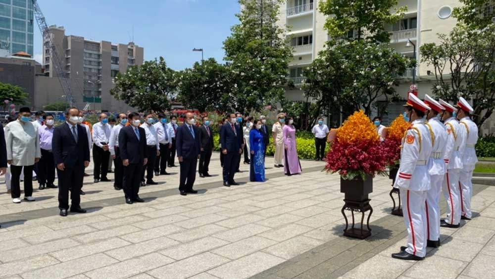 Tiếp đó, đoàn đặt lẵng hoa tưởng niệm đồng chí Ngô Gia Tự tại Công viên Ngô Gia Tự (TP Bắc Giang) - một trong những chiến sĩ cộng sản lỗi lạc, người con ưu tú của dân tộc đã trọn đời chiến đấu, hy sinh vì độc lập - tự do của đất nước.