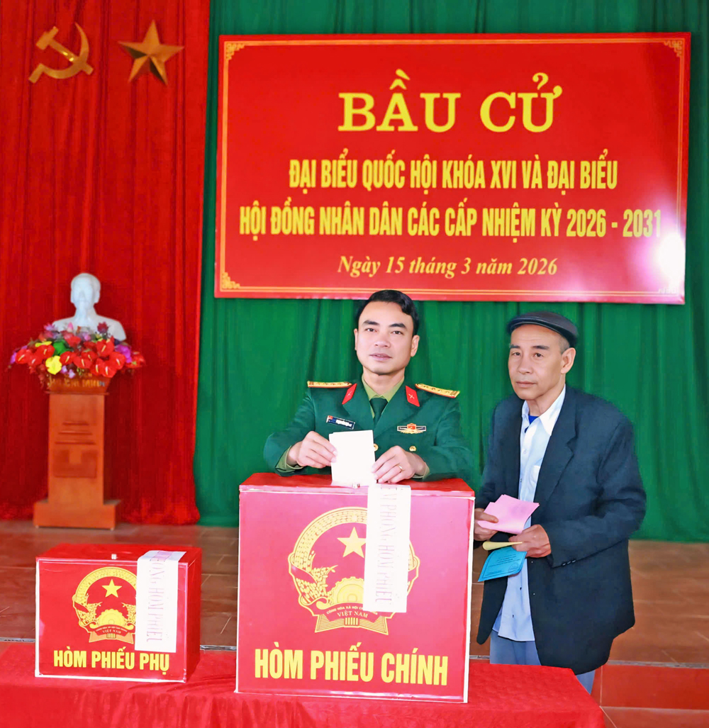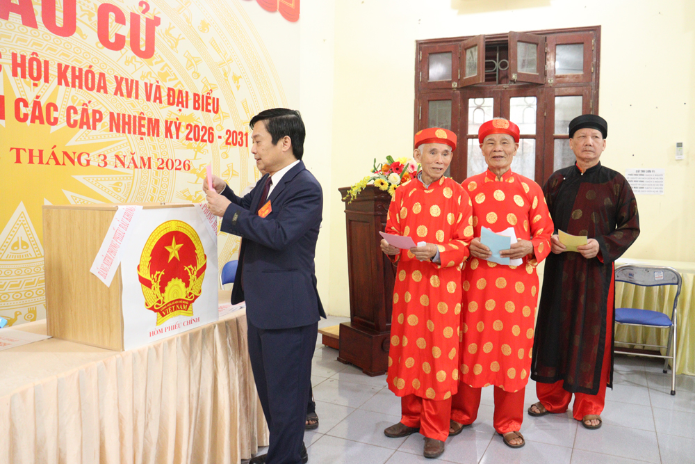 Sau khi thực hiện các nghi thức khai mạc, đồng chí Nghiêm Xuân Hưởng cùng cử tri bỏ phiếu bầu đại biểu Quốc hội khóa XVI và đại biểu HĐND các cấp nhiệm kỳ 2026 - 2031 tại Tổ bầu cử số 2; đồng thời động viên cử tri và các thành viên tổ bầu cử số 2.