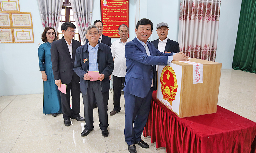 Ngay sau khi dự khai mạc và bỏ phiếu bầu cử tại đây, đồng chí Vũ Minh Hiếu đi kiểm tra công tác bầu cử tại các xã: Trung Chính, Trung Kênh, Lâm Thao.
