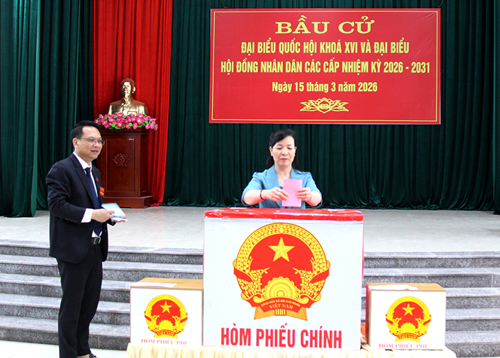 Tổ bầu cử số 10 có 1.184 cử tri thuộc tổ dân phố Sơn. Sau khi thực hiện các nghi thức khai mạc bầu cử, đồng chí Trần Thị Hằng cùng cử tri bỏ phiếu bầu cử đại biểu Quốc hội khóa XVI và đại biểu HĐND các cấp nhiệm kỳ 2026 - 2031.