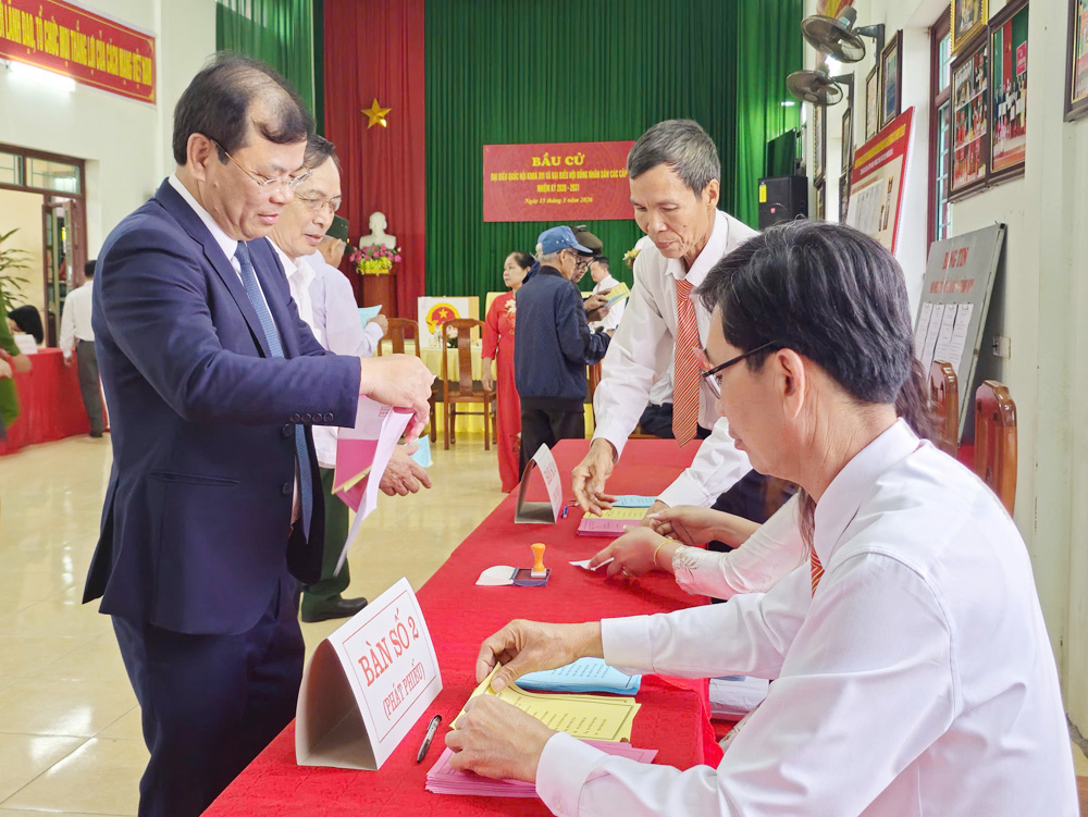 Đồng chí Đào Quang Khải và cử tri bỏ phiếu bầu cử. |