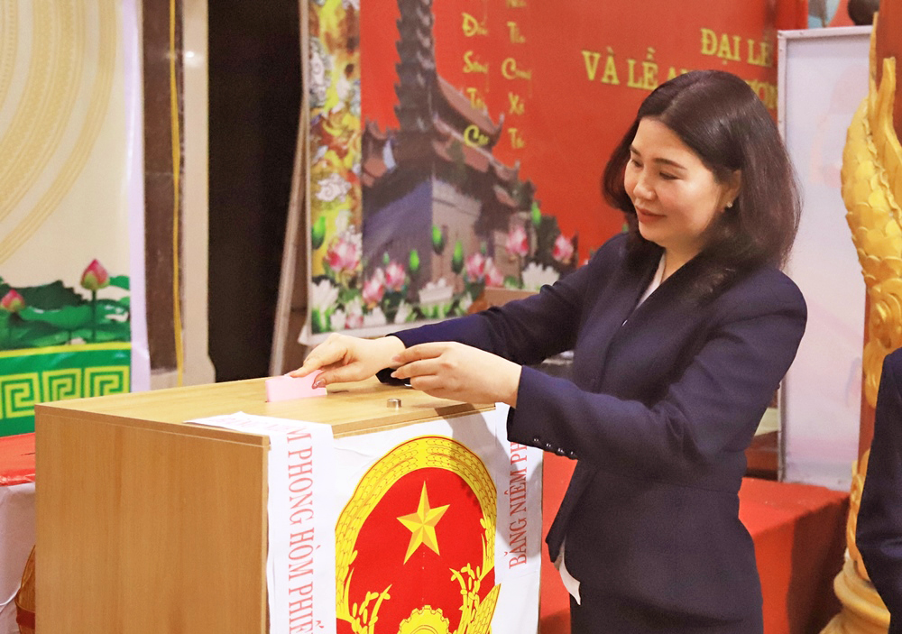 Đồng chí Nguyễn Thị Hà bỏ phiếu bầu cử tại tổ bầu cử số 10, xã Gia Bình. |