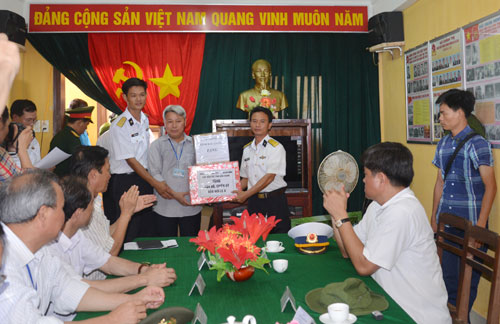 Đồng chí Từ Minh Hải, Ủy viên Thường trực HĐND tỉnh thay mặt Đoàn đại biểu tỉnh Bắc Giang tặng quà cán bộ, chiến sĩ đảo Núi Le A.