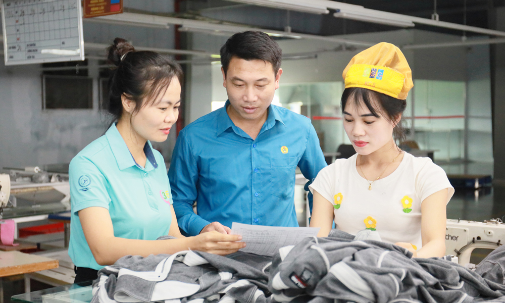 Tại Công ty trách nhiệm hữu hạn Peony (Khu công nghiệp VSIP) - nơi tạo việc làm thường xuyên cho hơn 2,3 nghìn công nhân may, chị Vũ Thị Dung, Chủ tịch Công đoàn cơ sở lựa chọn cách làm “gần công nhân, sát phân xưởng”. Sau mỗi ca làm, cán bộ công đoàn trực tiếp xuống xưởng, lắng nghe ý kiến người lao động, từ điều kiện làm việc, bữa ăn ca đến hoàn cảnh gia đình. Trên cơ sở đó, công đoàn tổng hợp, đưa ra đối thoại với chủ doanh nghiệp, đề xuất cải thiện môi trường làm việc, nâng chất lượng bữa ăn ca (hiện công ty đang hỗ trợ 25 nghìn đồng/suất), bổ sung phụ cấp thâm niên (200 nghìn đồng/người/tháng và cứ thêm 1 năm gắn bó sẽ được tăng thêm 100 nghìn đồng/người/tháng). Đặc biệt, với gần 70% là lao động nữ, công ty luôn ưu tiên quan tâm đến đời sống chị em như: Mang thai từ tháng thứ 5 trở đi được nghỉ sớm 1 giờ/ngày; nuôi con nhỏ dưới 6 tuổi được hỗ trợ 50 nghìn đồng/tháng/con.