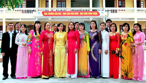 Cô giáo Nguyễn Thị Thanh Thiết và đội ngũ giáo viên nhà trường
