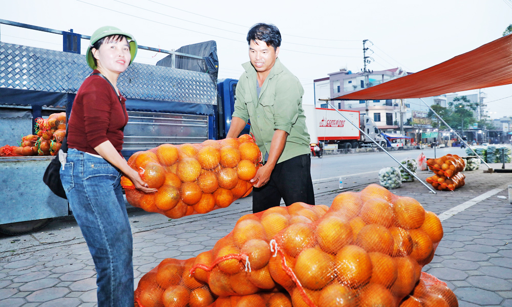 Khảo sát tại khu vực tổ dân phố Cầu Cao (cạnh quốc lộ 31), phường Phượng Sơn - đây là điểm tập kết, thu mua các sản phẩm cây có múi lớn của vùng cây ăn quả Lục Ngạn, nhận thấy, nườm nượp xe tải, xe thồ khắp nơi đổ về đây “săn hàng”. Chủ một đại lý tại đây cho biết, việc tiêu thụ cam, bưởi những ngày cận Tết rất thuận lợi, được giá bán nên cho thu nhập ổn định.