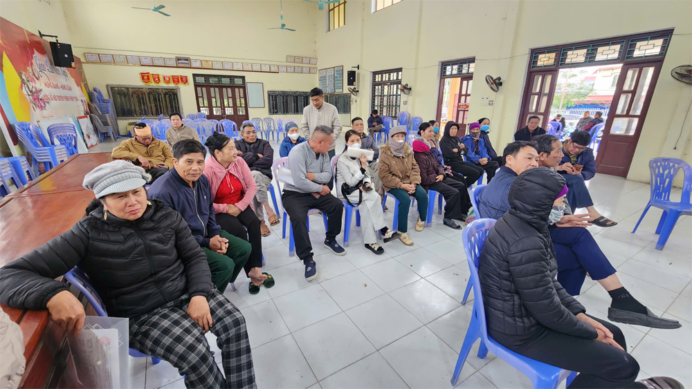 Tại nhà văn hóa thôn Tỳ Điện, xã Lương Tài, tỉnh Bắc Ninh, đông đảo người dân đến nhận tiền đền bù, hỗ trợ do có đất thu hồi làm dự án sân bay Gia Bình.