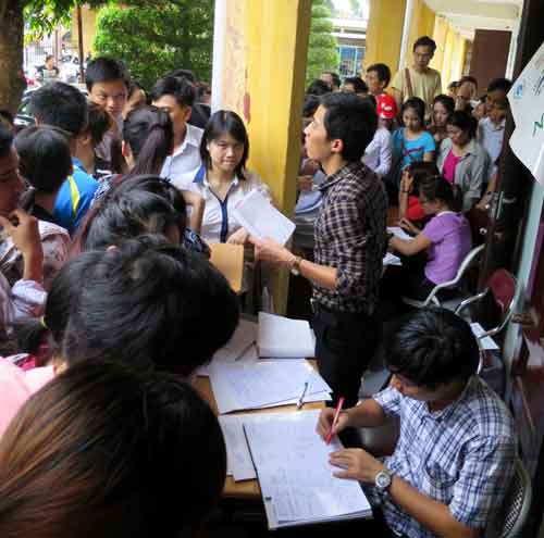 Thí sinh nộp hồ sơ đăng ký tuyển dụng công chức, viên chức năm 2014 tại Sở Nội vụ. Ảnh: Mai Toan