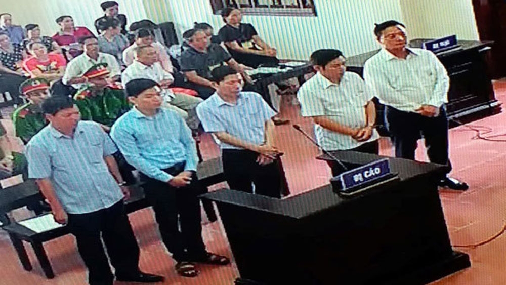 Bị cáo Trần Văn Sơn 42 tháng tù giam; Hoàng Đình Khiếu 36 tháng tù giam; Trần Văn Thắng 36 tháng tù giam; Trương Quý Dương 30 tháng tù giam; Đỗ Anh Tuấn 30 tháng tù giam cùng về tội “Thiếu trách nhiệm gây hậu quả nghiêm trọng” được quy định tại Khoản 2, Điều 285, Bộ luật Hình sự năm 1999.