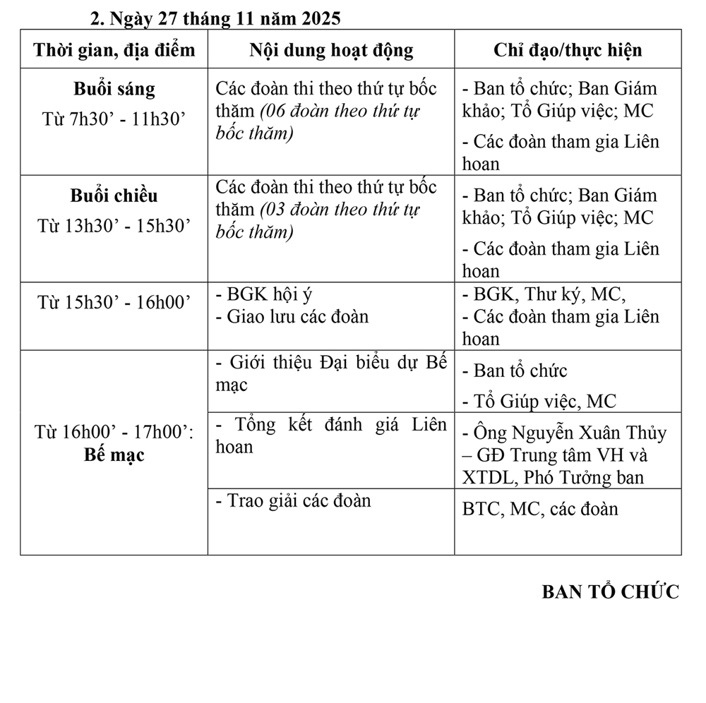 Buổi chiều (16h00 - 17h00): Bế mạc, đánh giá kết quả Liên hoan và trao giải.