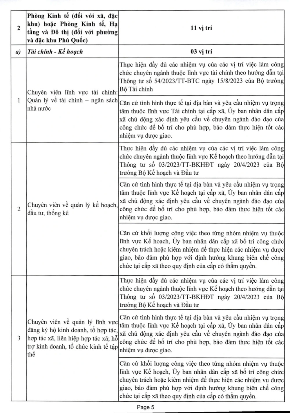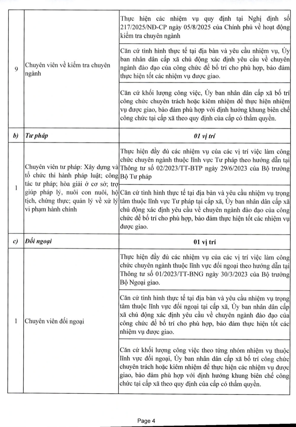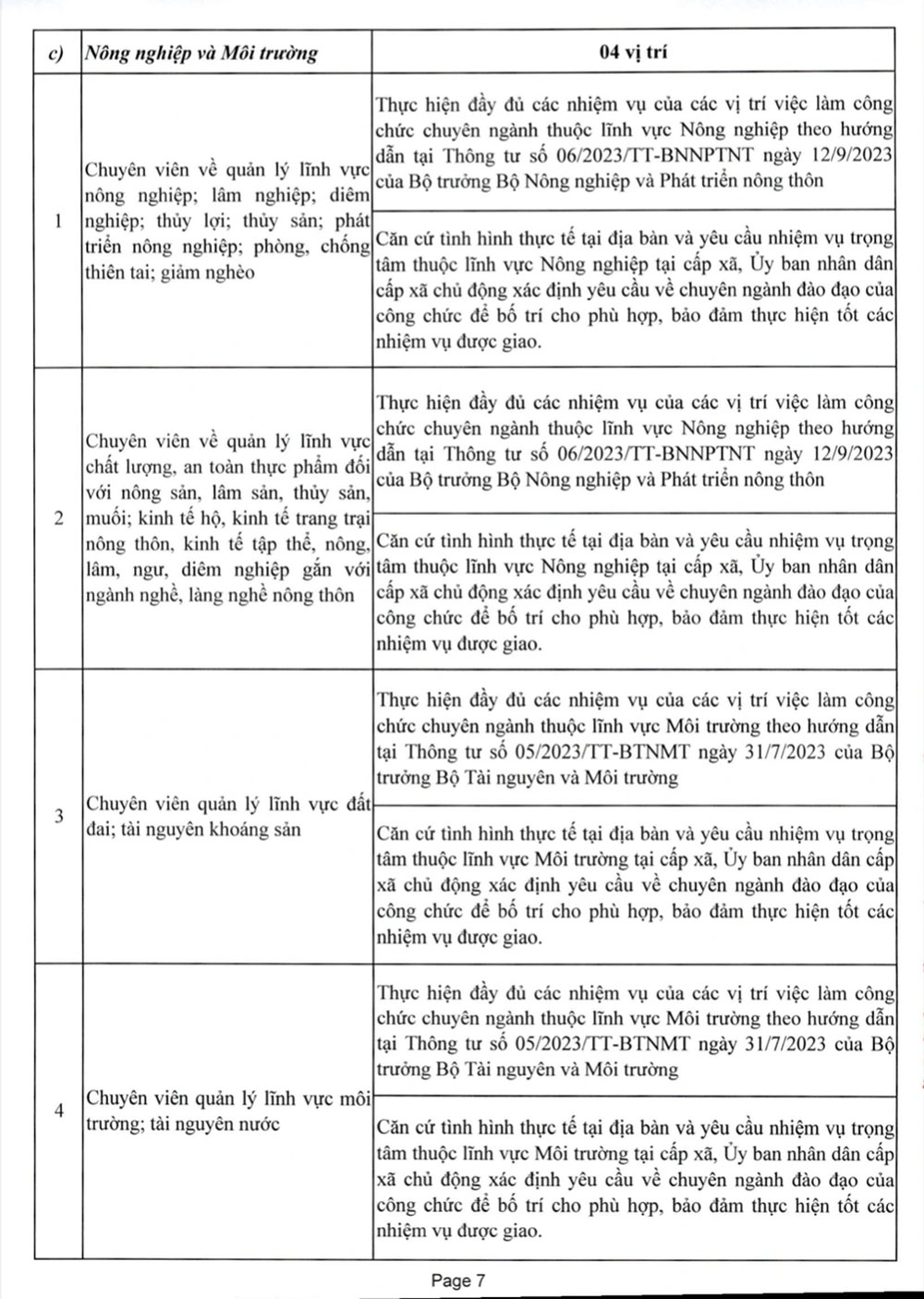 Như vậy, vị trí việc làm sử dụng tại cấp xã là 43 vị trí (bao gồm 8 vị trí lãnh đạo, quản lý; 32 vị trí chuyên môn, nghiệp vụ bố trí theo ngành, lĩnh vực và 3 vị trí việc làm hỗ trợ, phục vụ). Số vị trí này tăng 4 vị trí so với định hướng tại Công văn số 7415/BNV-CCVC.