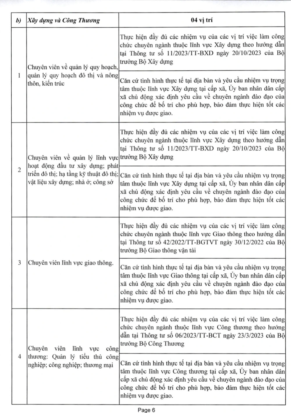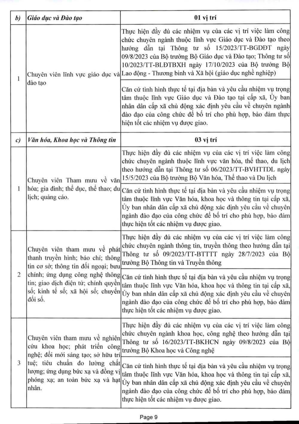 Chi tiết danh mục 43 vị trí việc làm của công chức cấp xã