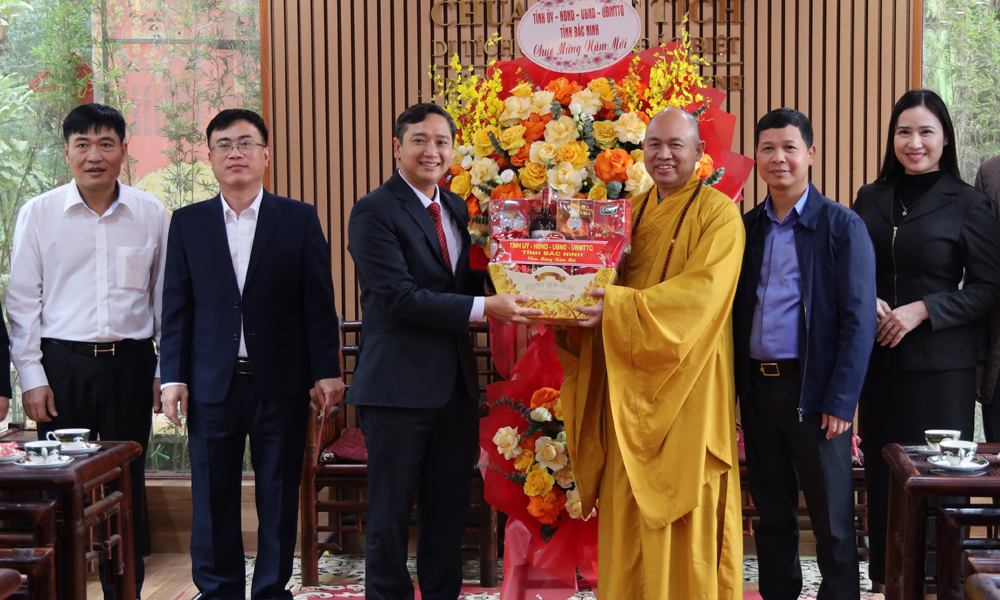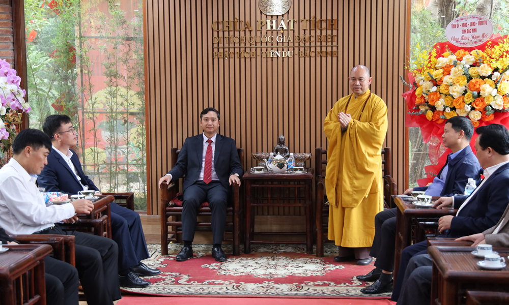 BẮC NINH - Ngày 3/2, đồng chí Nguyễn Việt Oanh, Phó Bí thư Tỉnh ủy, Chủ tịch HĐND tỉnh đến thăm, chúc Tết Thượng tọa Thích Đức Thiện, Phó Chủ tịch kiêm Tổng Thư ký Hội đồng Trị sự Giáo hội Phật giáo Việt Nam, Trụ trì Chùa Phật Tích nhân dịp Tết Nguyên đán Bính Ngọ. Cùng đi có lãnh đạo Ban Tuyên giáo và Dân vận Tỉnh ủy, Sở Dân tộc và Tôn giáo, Công an tỉnh, xã Tiên Du.