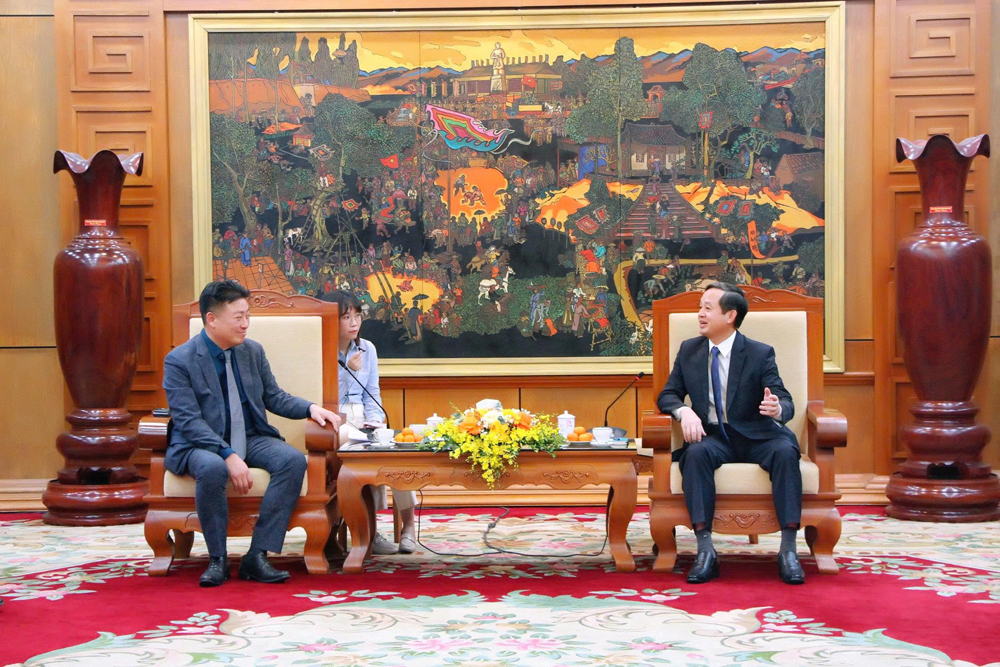 Đồng chí Phạm Hoàng Sơn tiếp Chủ tịch Tập đoàn Seojin. |