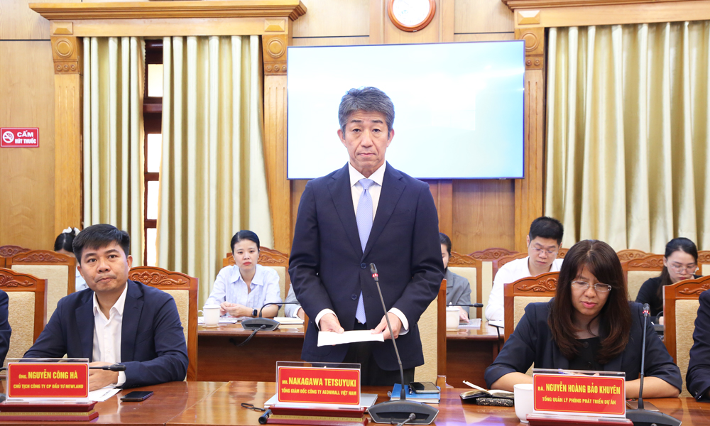 Tại buổi làm việc, ông Nakagawa Tetsuyuki, Tổng Giám đốc Công ty trách nhiệm hữu hạn AeonMall Việt Nam cảm ơn sâu sắc lãnh đạo tỉnh và các đại biểu tỉnh Bắc Ninh đã dành thời gian tiếp đoàn công tác. Ông đánh giá cao sự hỗ trợ và đồng hành của tỉnh trong suốt quá trình triển khai dự án, nhờ đó Công ty đã đạt được những kết quả đáng ghi nhận.