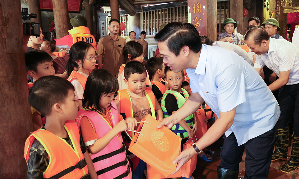 Chủ tịch UBND tỉnh Vương Quốc Tuấn thăm, tặng quà trẻ em và người dân bị ảnh hưởng do lũ lụt tại phường Vân Hà