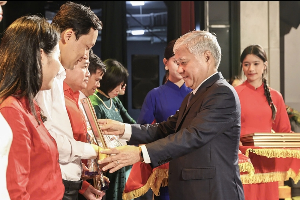 Đồng chí Đỗ Văn Chiến trao khen thưởng cho các tập thể, cá nhân tiêu biểu trong vận động ủng hộ Cuba. |
