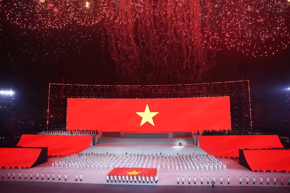 Chương trình khép lại bằng màn trình diễn pháo hoa nghệ thuật quy mô lớn, rực sáng bầu trời như một bản hòa ca hùng tráng, chào mừng thành công Đại hội XIV của Đảng, mở ra kỷ nguyên phát triển mới của đất nước Việt Nam phồn vinh, hùng cường, hạnh phúc.
