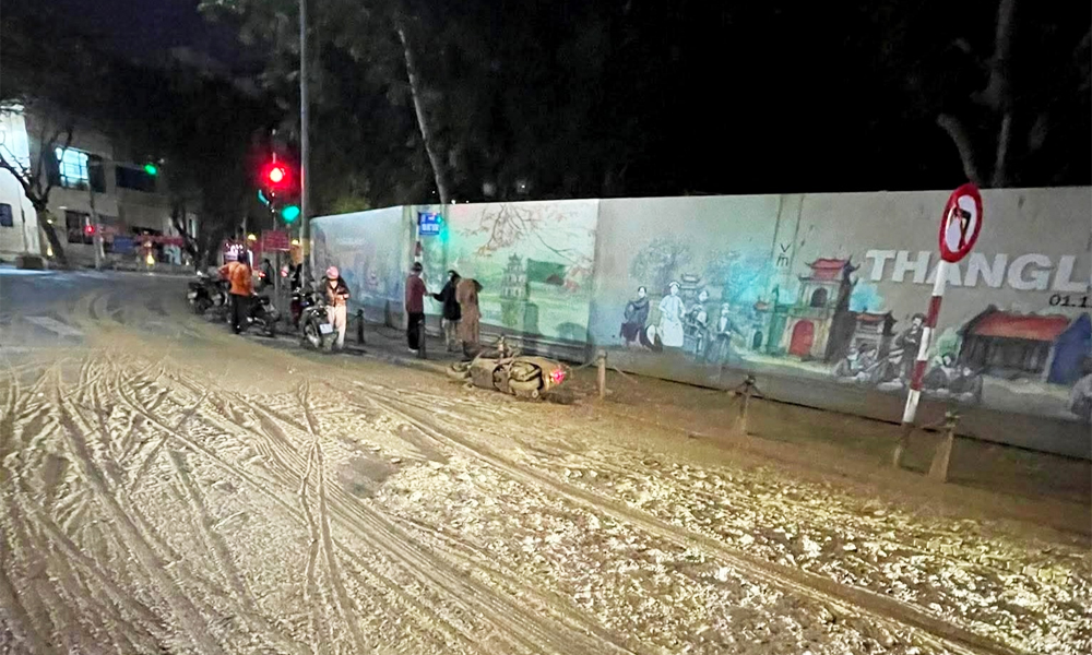 Đêm 16/11, một chiếc xe tải làm rơi bùn tại nút giao Tôn Đức Thắng - Nguyễn Thái Học (Hà Nội) khiến mặt đường trơn trượt, nhiều người xe máy trượt ngã vì lớp bùn dày, một số phương tiện hư hỏng.
