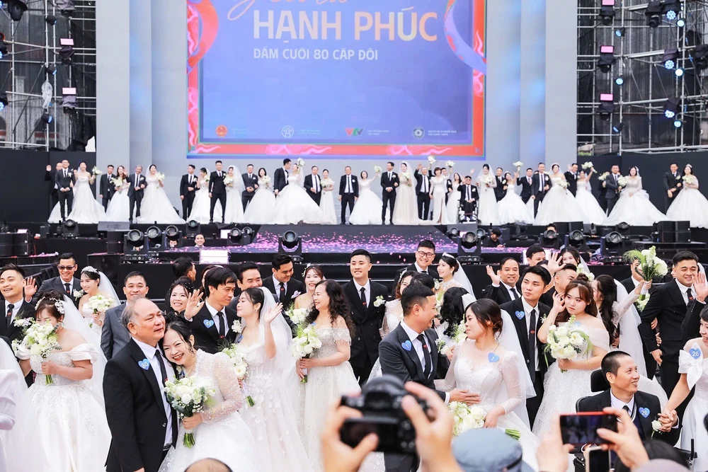 80 cặp đôi thực hiện nghi thức Lễ cưới “Ngày chung đôi – Yêu là hạnh phúc”. |